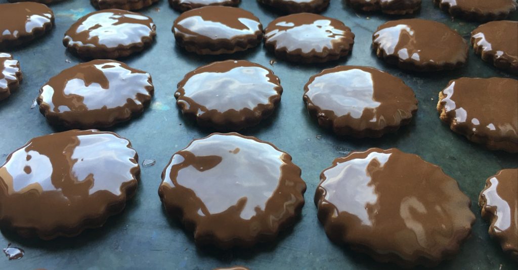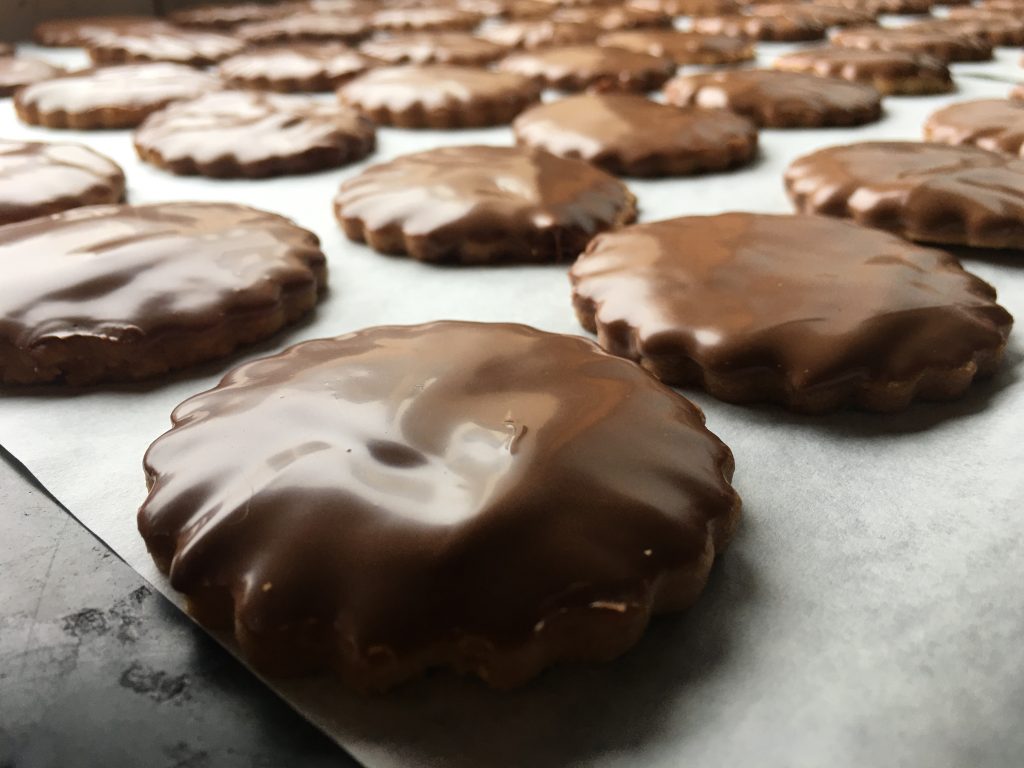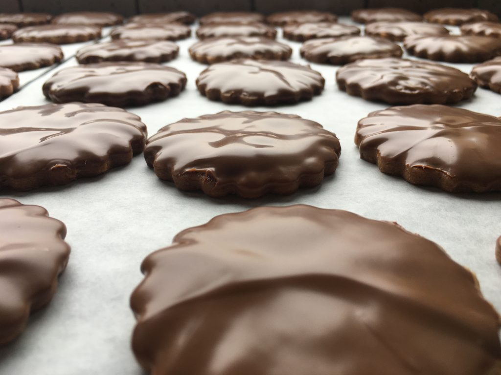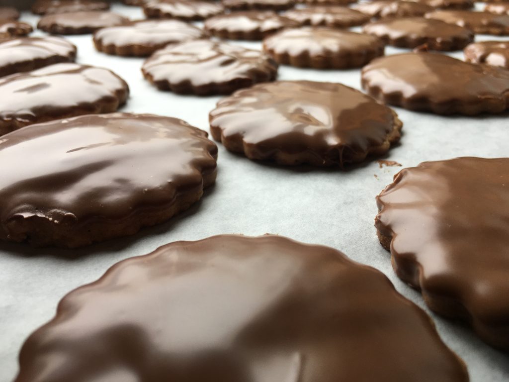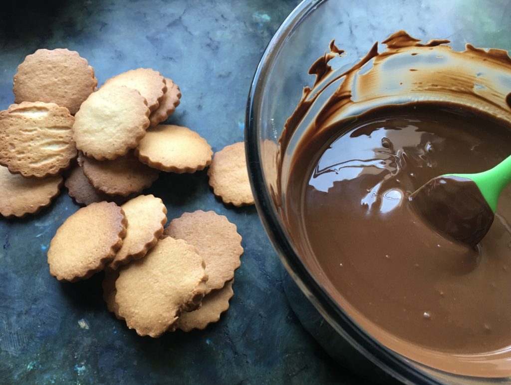 Une fois vos biscuits refroidis, vous pouvez les plonger que d'une face, comme moi, de chocolat !