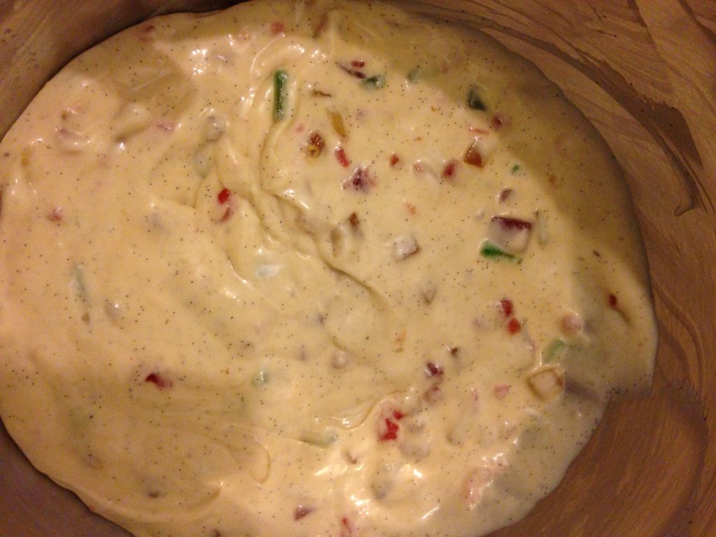 d - Fouettez ensuite votre crème liquide. Incorporez tous vos fruits confits dans votre crème pâtissière et détendez-la avec un de kirsch, puis finissez avec la crème fouettée.