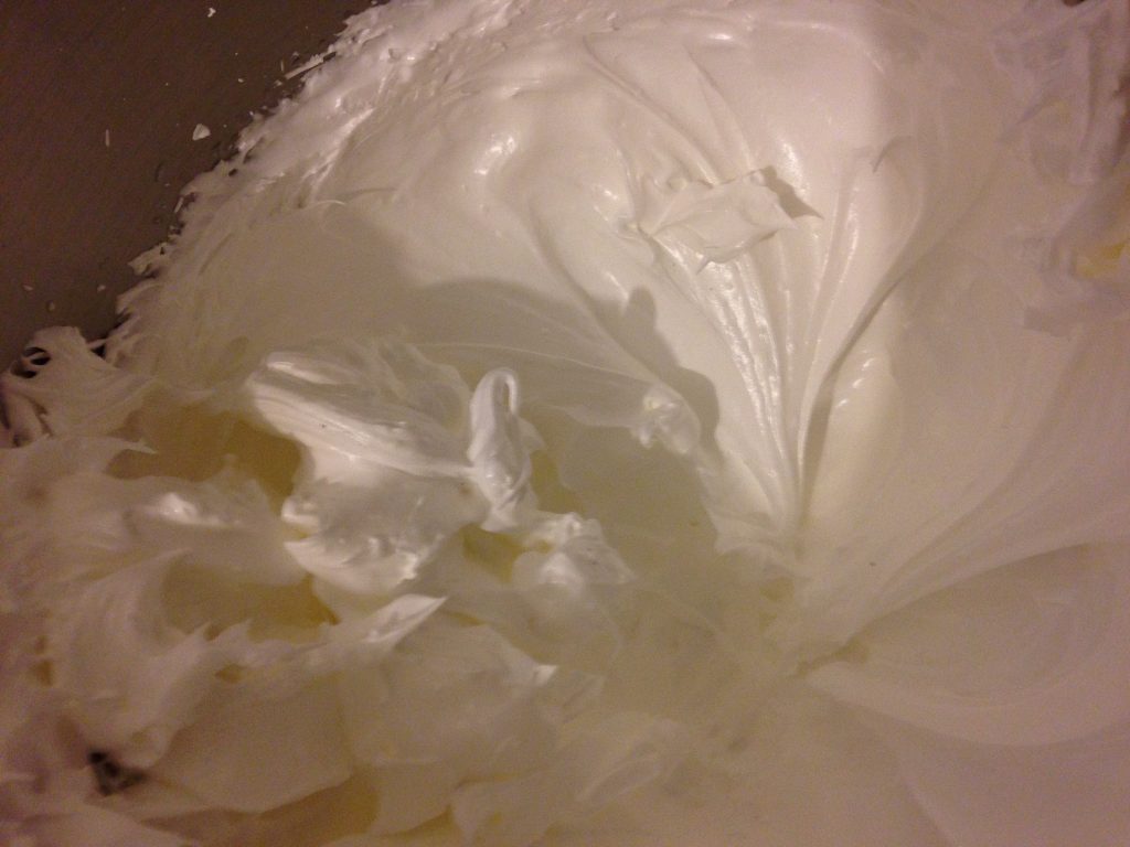 Montez à 121 °C, lorsque le sucre cuit atteint les 115 °C commencez à fouettez les blancs d'œufs en neige au bec d'oiseau, cela veut dire pas trop ferme.
