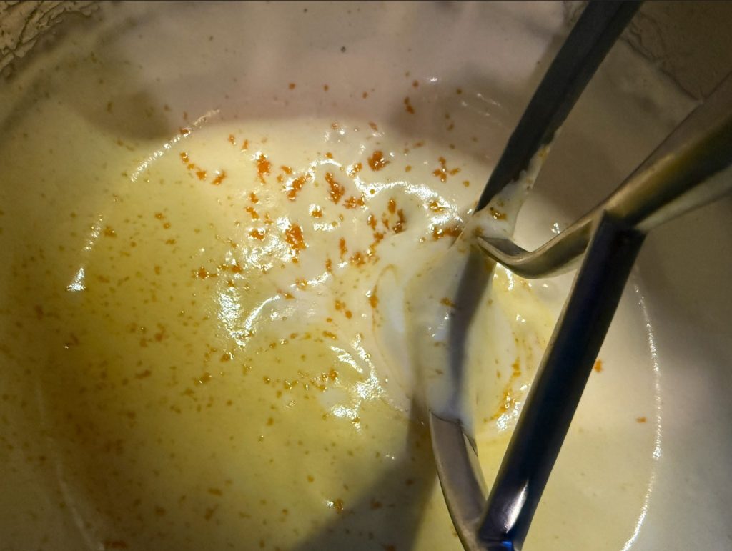 a - Monter sa crème chantilly à l'aide du fouet de votre robot, et l'incorporer à la moitié de votre clémentine curd.