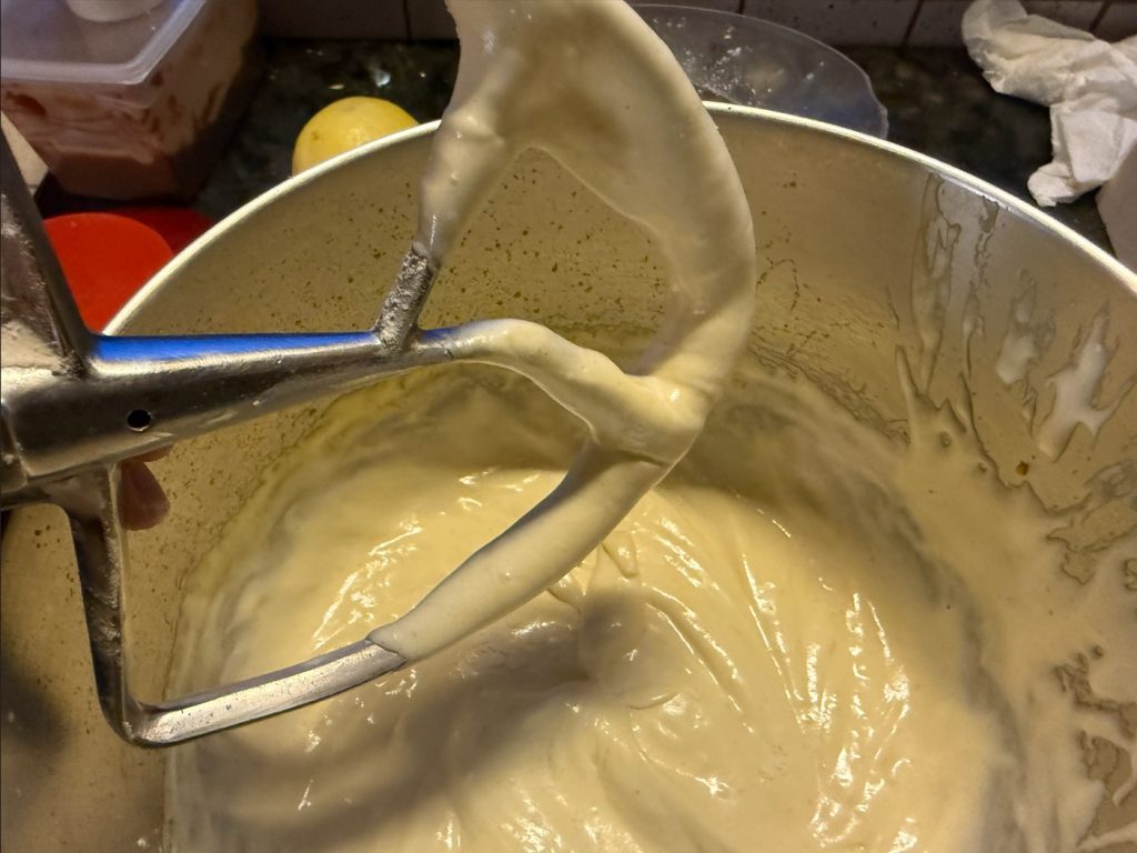 d - Lorsque votre préparation est refroidie incorporez votre beurre pommade au fouet ou à la girafe !